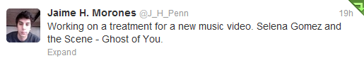 Jaime Morones, en kusin till Selena skrev på sin Twitter igår att det kommr bli en musik video till Ghost of You. Men idag förtydligade han det han skrivit. Han kommer bara att använda låten för ett klipp, men det kommer inte att kopplas med bandet "The Scene" eller Selena.